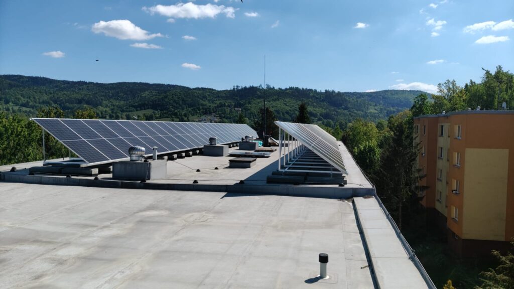 Na bytový dům v Liberci jsme instalovali fotovoltaický systém, který se skládá z 52 ks FV panelů 575 Wp MONO, hybridního střídače GoodWe 29,9K-ET, 20 ks vysokonapěťových baterií Pylontech H48050 o celkové kapacitě 48 kWh, řídícího modulu BMS, konstrukce na rovnou střechu, včetně kotvicích a zatěžovacíh prvků, kabeláže a dalšího příslušenství pro správné fungování celého systému.